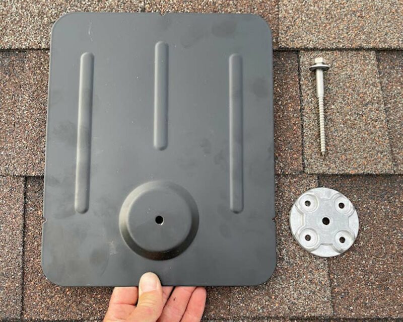 - Use to attach an L-foot or Standoff with flashing to a roof deck with four 1/4-inch screws.