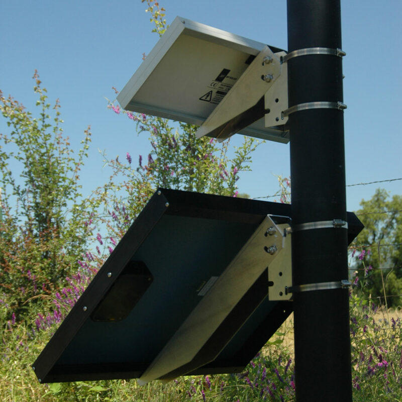 Tamarack’s side of pole mounts are designed to be mounted on the side of poles with diameters between 2.25” and 4.5”, such as light poles, sign poles, and communication towers. We have sizes for a single typical 60 cell module or for one or two smaller modules.